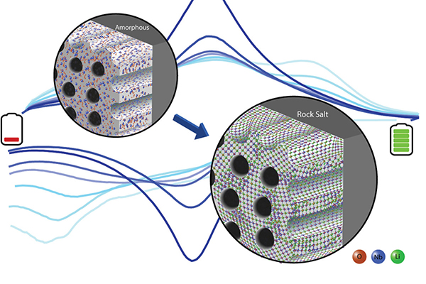 当今锂离子电池充电的最大瓶颈之一是阳极。最常见的阳极是由石墨制成的,它的能量非常密集,但由于锂金属电镀过程存在着火和爆炸的风险,因此不能太快充电。在对电池具有更高能量和更快充电时间的需求不断增长的背景下,加州大学圣地亚哥分校和博伊西州立大学的研究人员开发了一种新的方法来制造 新型锂离子电池材料.他们通过锂循环将非晶态(非晶态)材料转变为具有卓越电池性能的晶态 Nb2O5 阳极材料。嵌入金属氧化物,如该团队发现的岩盐 Nb2O5 材料,由于降低了在低压下镀锂的风险,是很有前景的负极替代品。“如果你想为你的电动汽车充电 15 分钟,然后继续行驶 200 或 300 英里,你需要新的电池电极,它可以以非常快的速度充电而不会造成太大的性能损失,”Pete Barnes 说,该研究的主要作者发表在《自然材料》上。新电极在20 mA/g的充电速率下可实现269 mAh/g的高储锂,更重要的是在1 A/g的高充电速率下继续保持191 mAh/g的高容量。“诀窍是从更高能量的阶段开始,例如无定形材料。只需用锂循环材料,我们就可以创造出新的晶体排列,这些排列表现出比通过固态反应等传统方法获得的性能更好的排列,”博伊西州立大学材料科学与工程教授许慧 (Claire) Xiong 说。